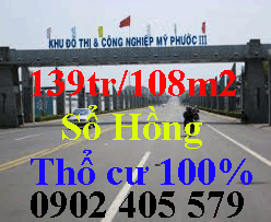 ĐẤT MỸ PHƯỚC 139TR/108M2 SỔ ĐỎ THỔ CƯ 100%